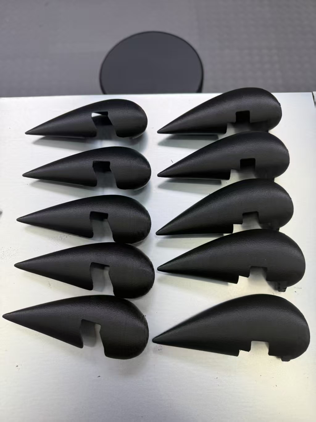 Finally, we see the future of manufacturing. A batch of ten identical Pandora fairing components, all printed reliably with IPCON PPA CF. This demonstrates the material’s consistency and its suitability for small-batch production. The complex, aerodynamic geometry of each part is uniform, highlighting the filament’s excellent flow characteristics and dimensional stability during printing. This is how custom, high-performance parts are made accessible.